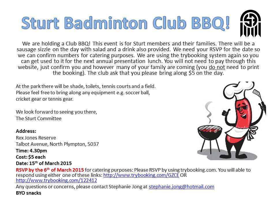 Who: All Sturt Badminton Club members, partners and immediate family are welcome